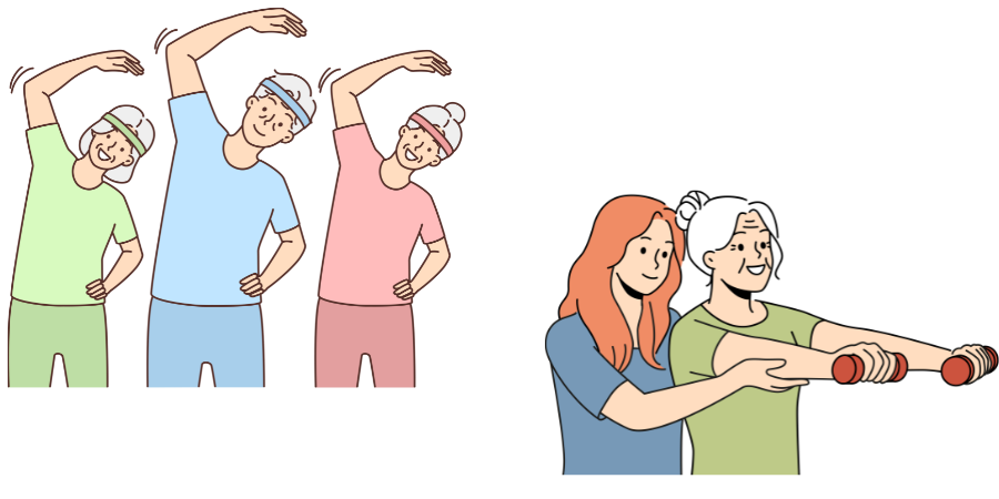 65 歳以上の方で『基本チェックリスト』により事業対象者となった方がご利用可能となります。メディカルフィットネスH&M の施設内で筋力トレーニングや有酸素運動、音響設備が整ったスタジオスペースで、楽しくグループレッスンなどを行います。
